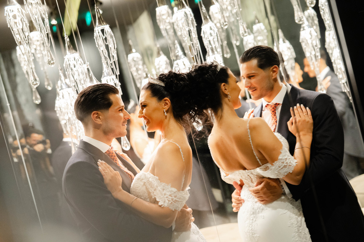 Antes disso, os preparativos já indicavam que este seria um dia repleto de luxo e estilo. A Catia preparou-se no Hotel Yeatman, um local icónico, onde cada detalhe reflete o mais alto padrão de sofisticação. Enquanto isso, o Hugo teve o seu momento no majestoso Palácio do Freixo, um cenário histórico que combinava na perfeição com o charme e a elegância dele.